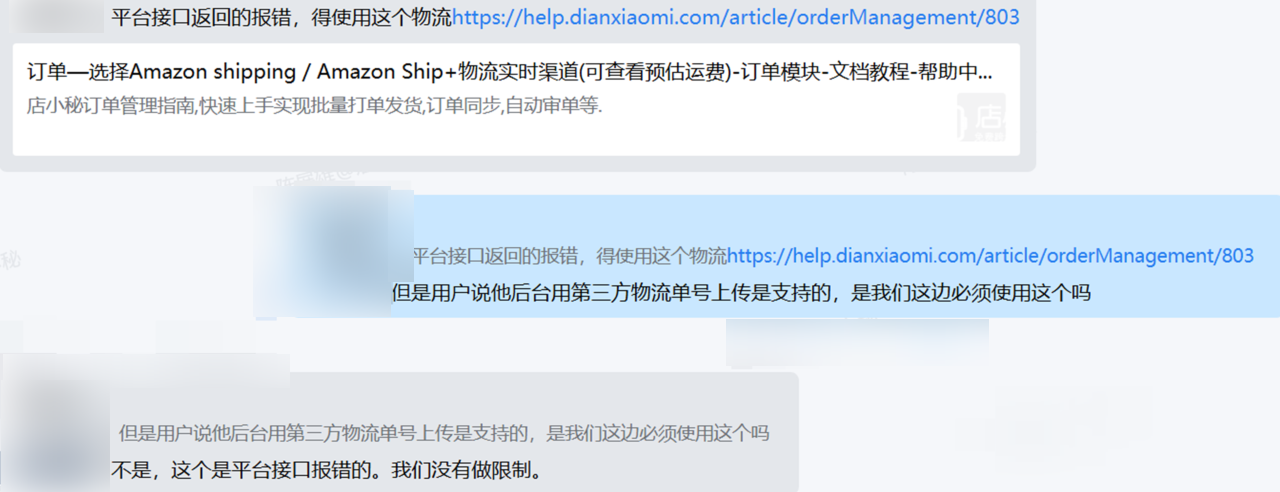 之前订单使用同一个物流可以发货,现在用小秘申请的单号到后台也可以上传,为什么通过小秘还是报错?