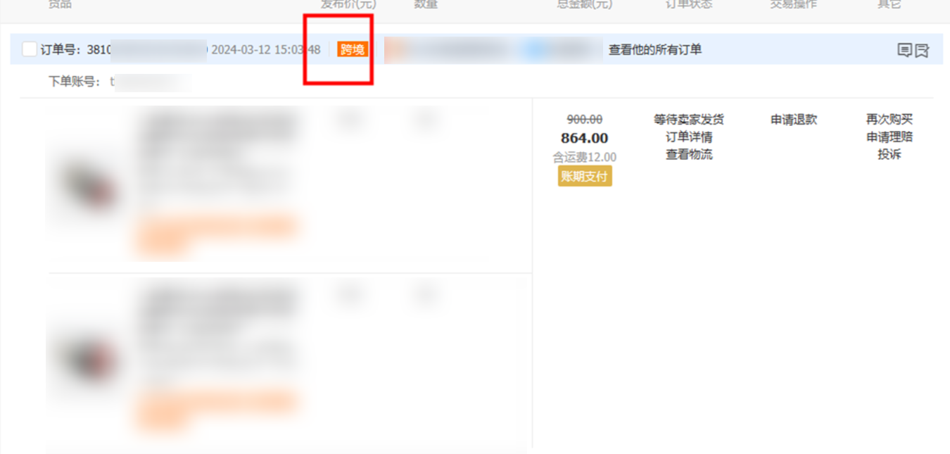 Q10:从小秘下单的1688采购单,1688后台有显示跨境的标识,直接在店铺后下单,是没有这个标识,什么原因?