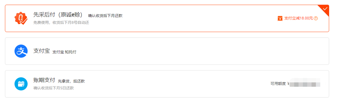 Q7:为什么1688采购单下单方式选诚E赊、37分阶段等方式,1688后台显示担保交易?