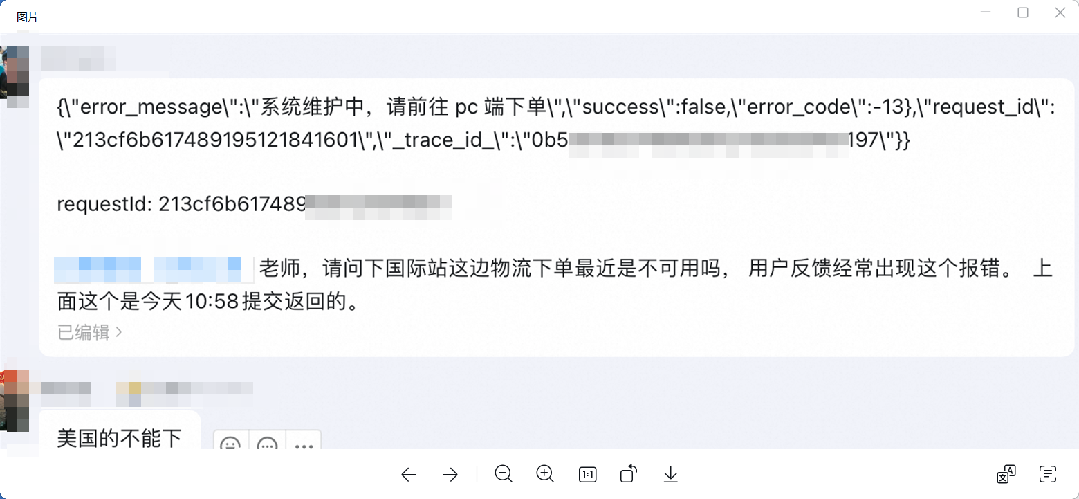 Q5: 国际站线上申请单号报错,系统维护中,请前往PC端下单