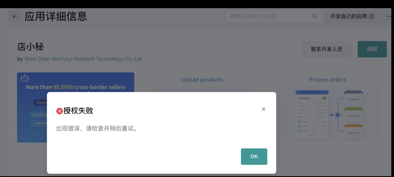 1、网络的问题,更换网络ip再登录店铺和店小秘账号操作授权即可