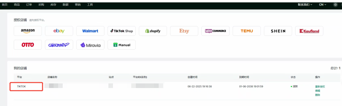 Q8:4Seller 后台已经添加 tiktok店铺成功了, 在店小秘这边同步店铺同步不到