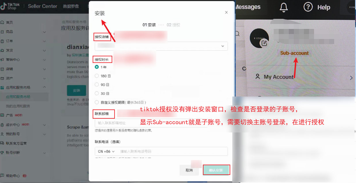 A11:需要登录tiktok主账号操作授权,子账号不会弹出
