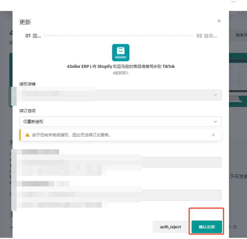 Q11:tiktok授权跳转到店铺后台没有弹出安装应用页面?