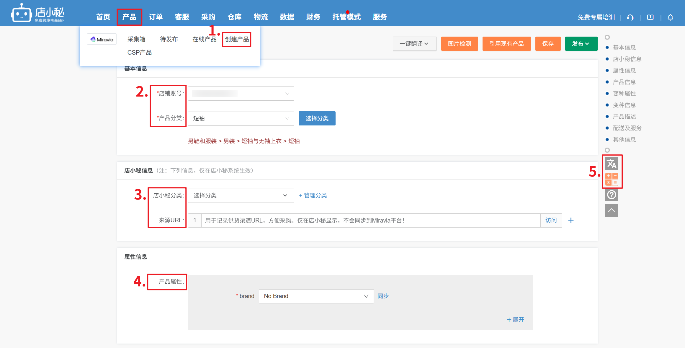 ② 品牌制造商:需要到Miravia后台创建品牌制造商,小秘页面同步选择