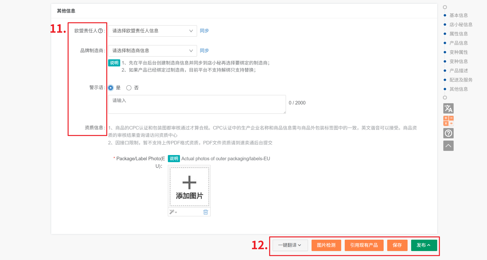 注意:仅部分分类需要选择欧盟责任人,其他不支持的分类选择不会生效