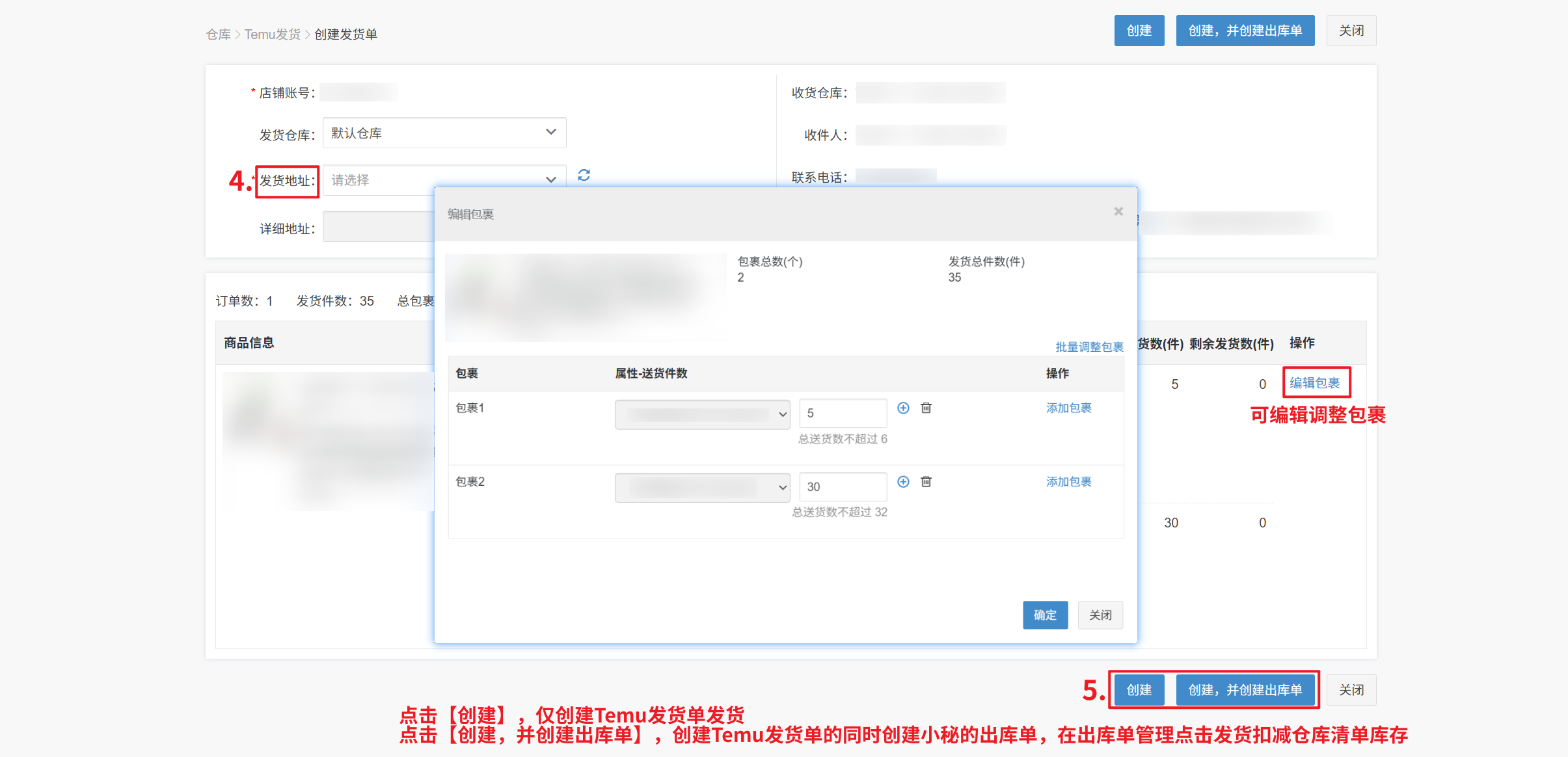② 创建发货单:1、Temu后台是先创建发货单,不进行预约,必须装完箱才能约物流