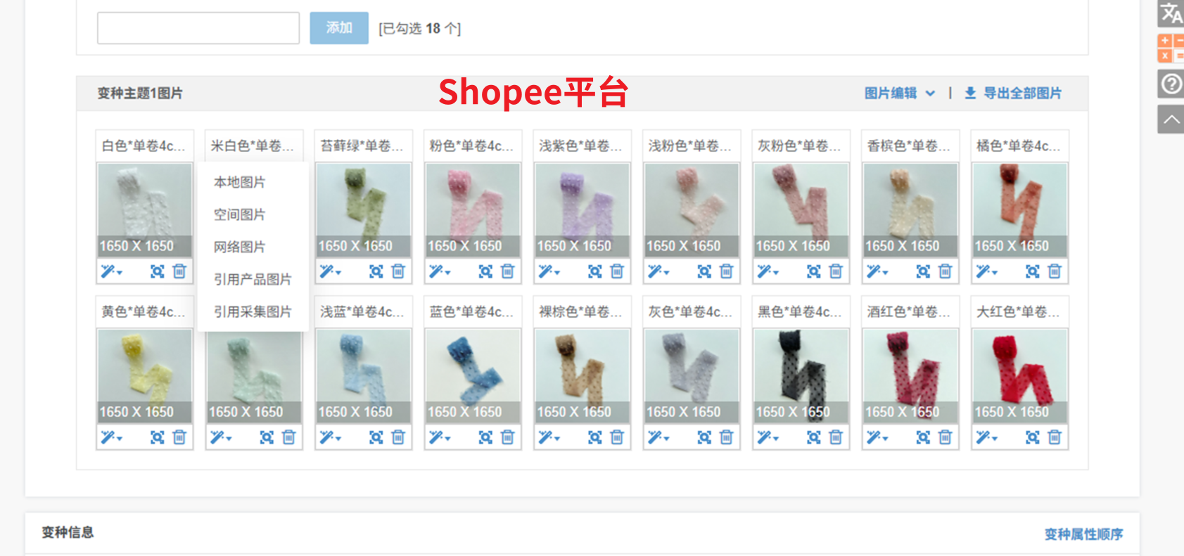 Q5:采集产品认领到Shopee平台有显示变种图片,但认领到产品开发却不显示?