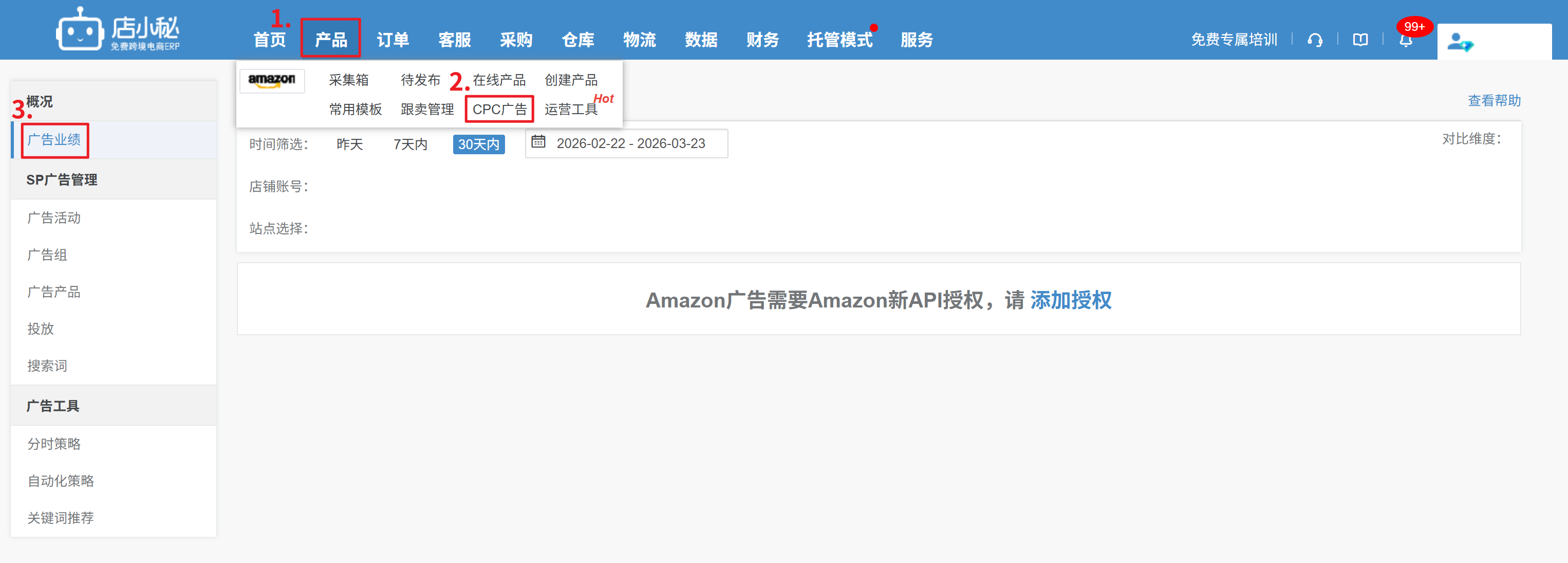 【登录小秘账号—用户名—平台授权—Amazon—授权广告API】