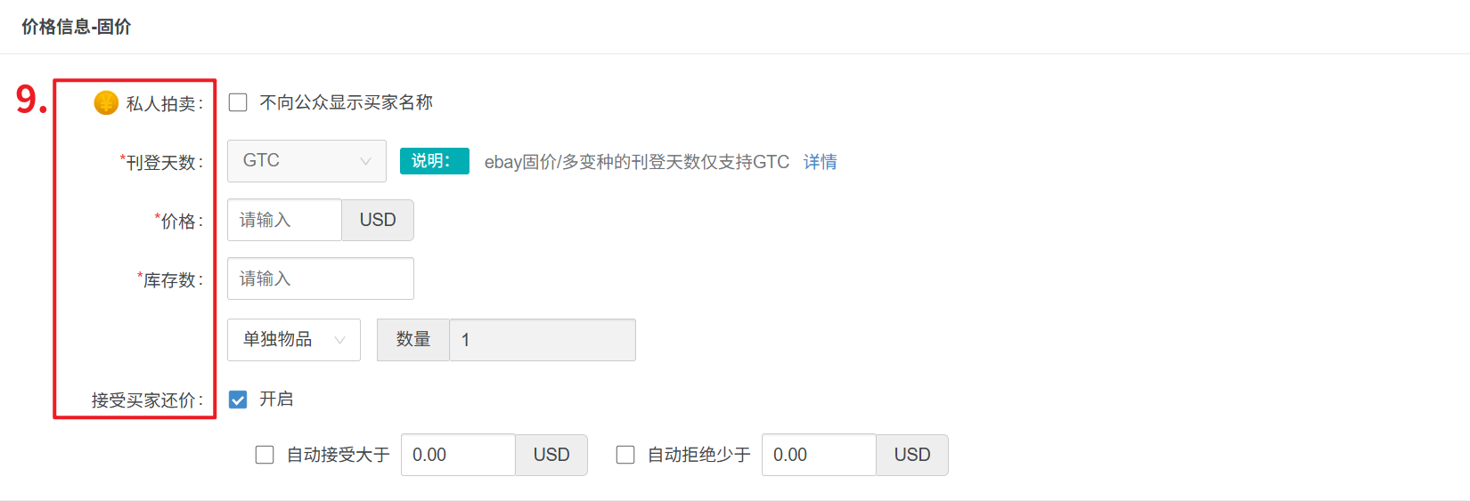 私人拍卖:可勾选不向公众展示买家名称,属于eBay付费项目