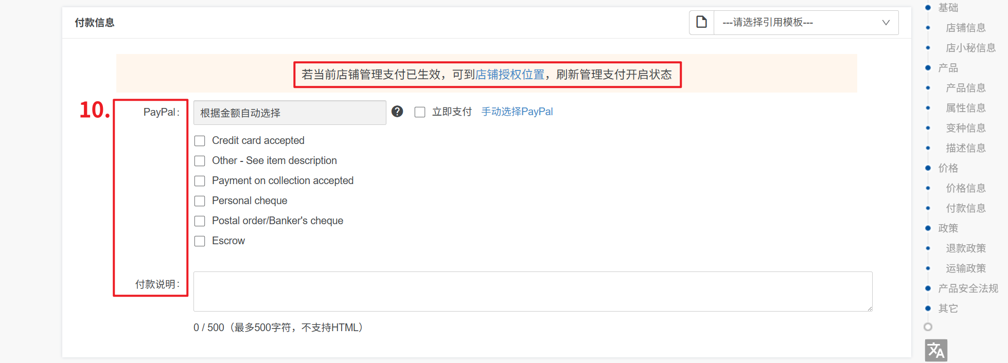 ① PayPal:若已经升级管理支付(Paynoeer),不需要选择PayPal账号信息