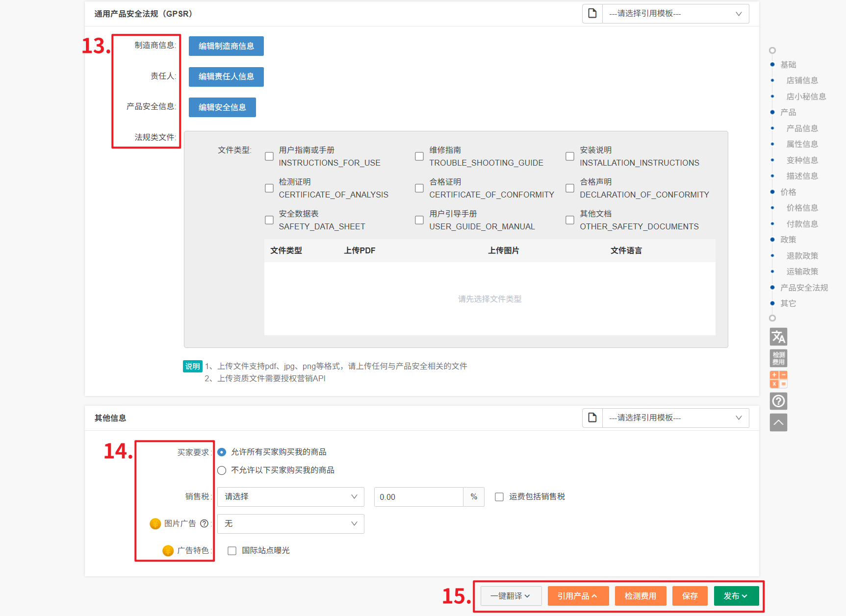 ① 制造商信息/责任人产品安全信息:eBay平台针对部分站点、分类产品需要上传GPSR信息