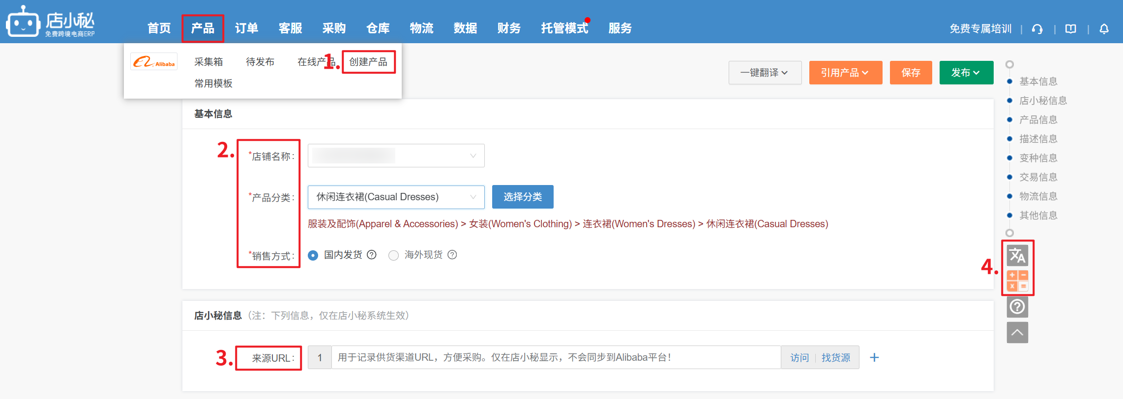 ③ 引用现有产品:直接引用之前刊登的产品的产品信息,修改后快速发布