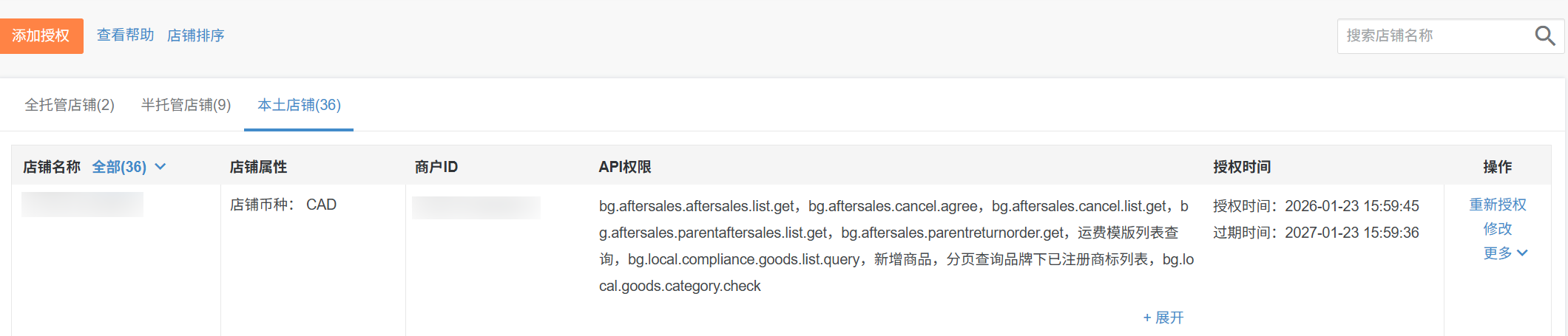 授权成功,小秘页面显示如图(可查看商户ID、店铺币种、自定义修改店铺名称,方便在小秘系统区分管理):