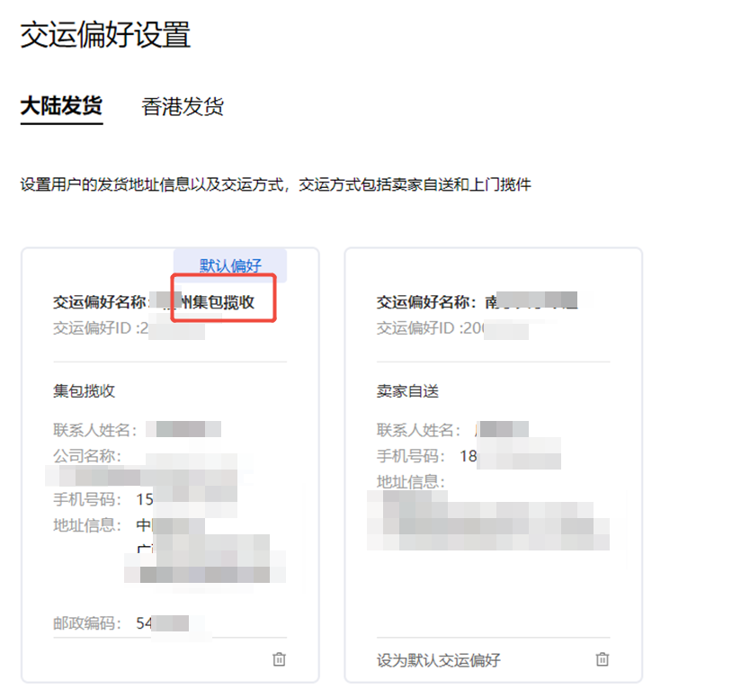 Q4:橙联后台交运偏好有2个,只同步到一个,店铺id是同一个