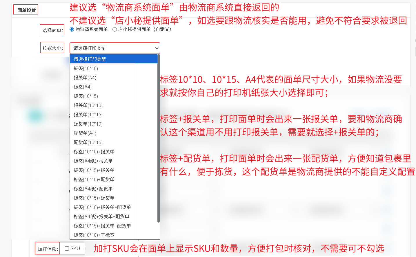 加打信息:加打SKU,会在面单上显示SKU和数量,方便打包时核对,不需要可不勾选。