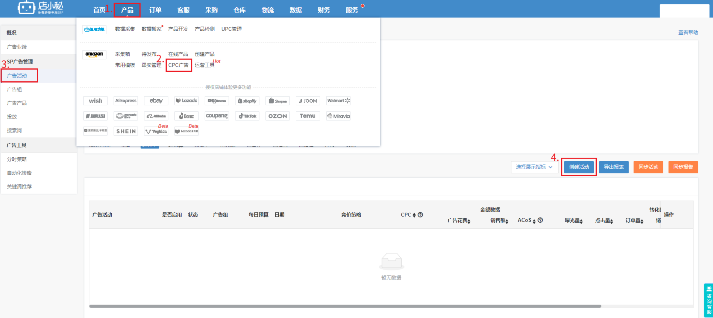 【4】首次必须在Amazon后台完成广告创建,之后才能再通过小秘创建