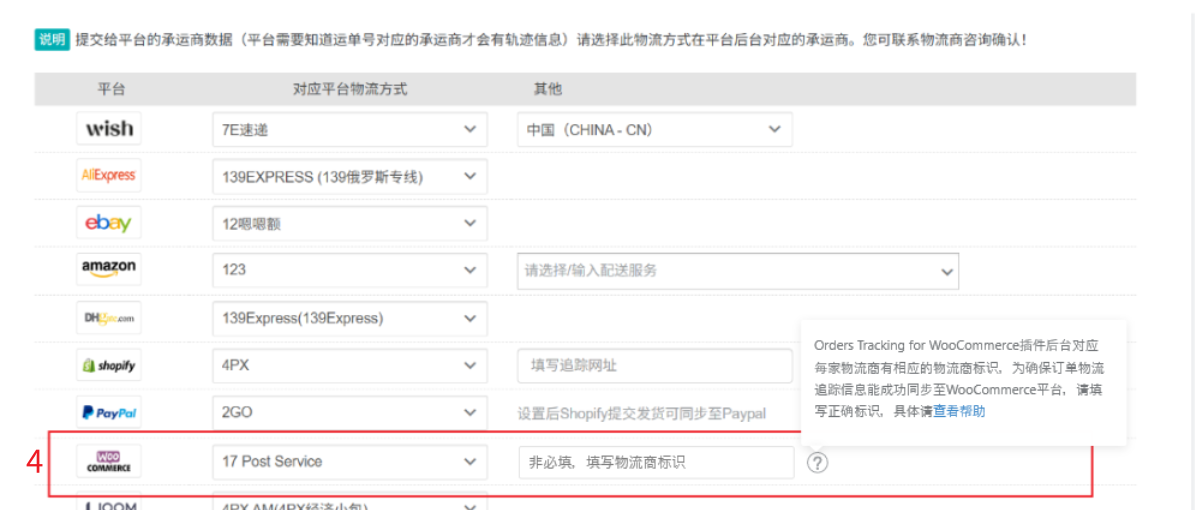 也会导致WooCommerce店铺后台无法展示运单号和承运商,请以后台实际展示为准