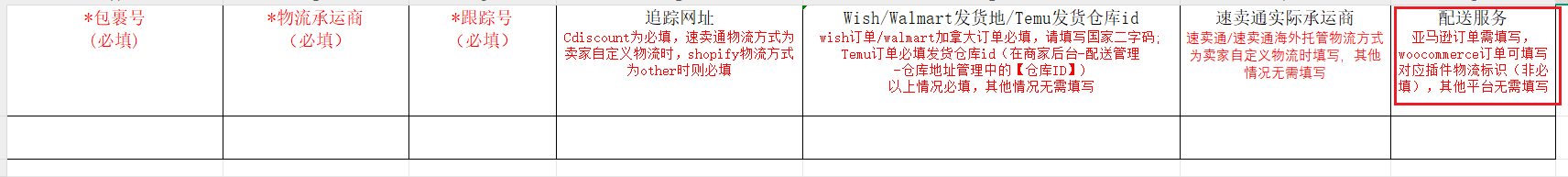 ②若是直接使用表格导入发货,可在配送服务的位置填写物流商标识