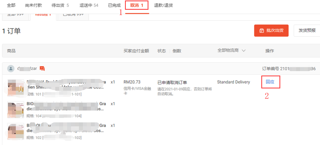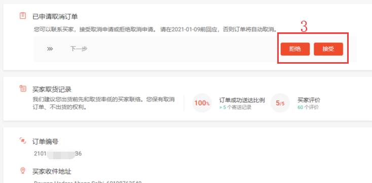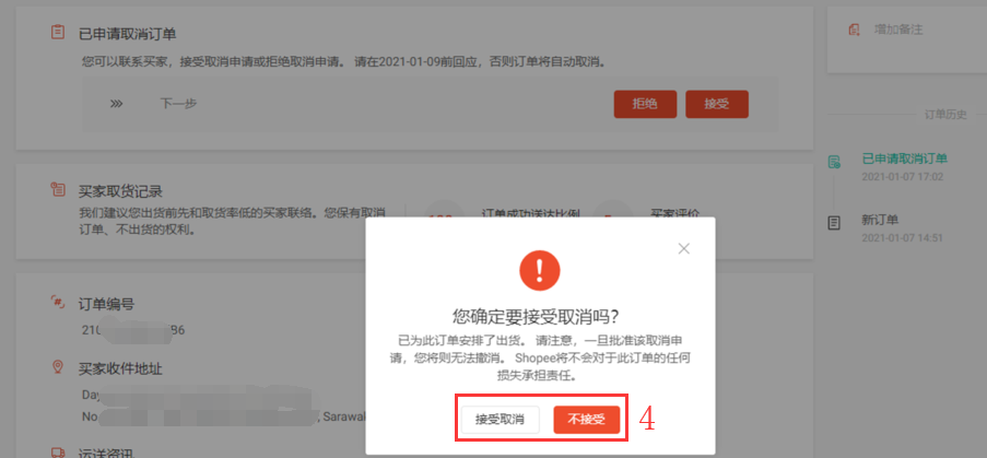 Shopee后台—取消—回应—拒绝/接受—接受取消/不接受】