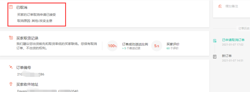 【2】买家下单超过1小时申请取消的订单,需要卖家进行确认,