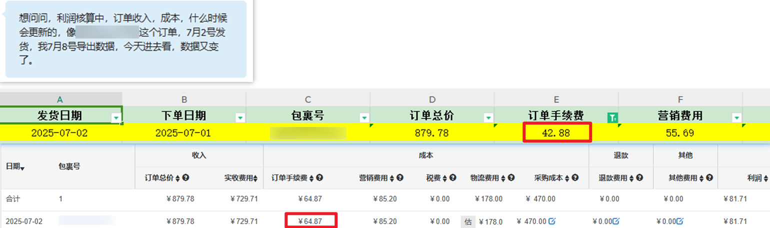 Q2:速卖通订单,利润核算中之前导出的手续费和现在的不一样?
