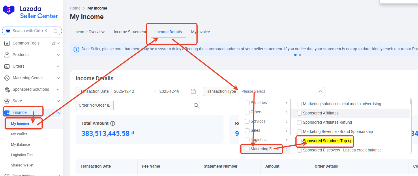 A2:会,可以在Lazada平台结算—订单概览—营销费用里面