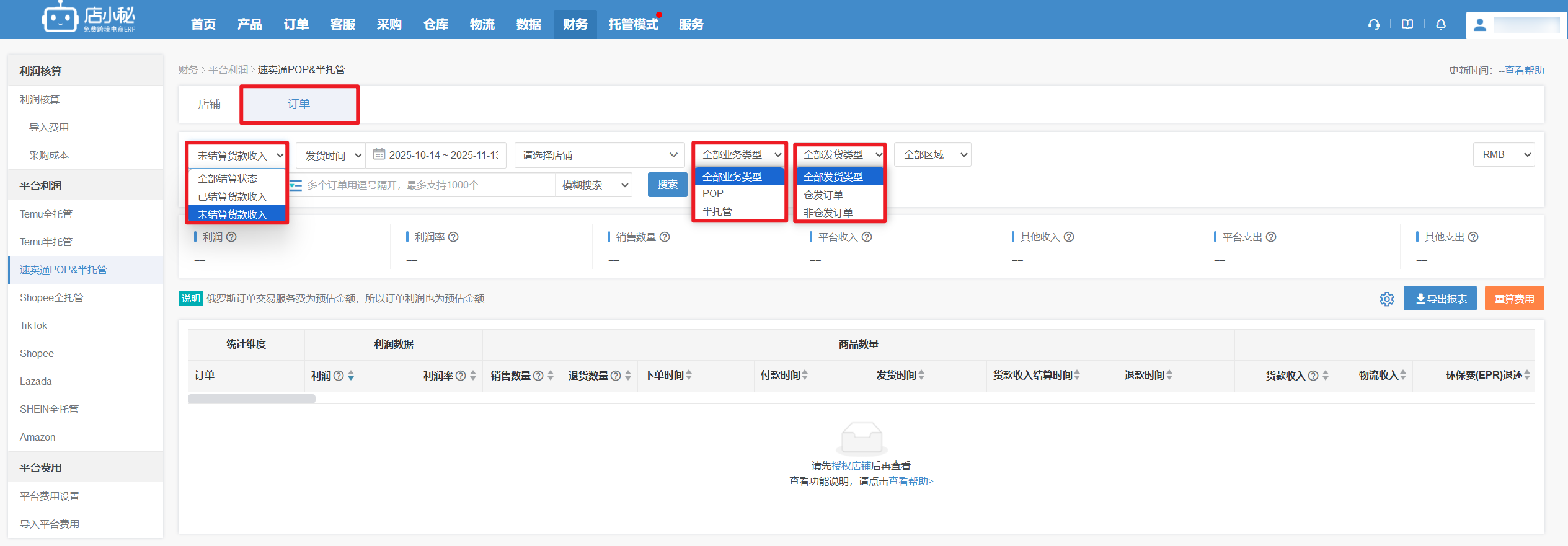 Q4:平台利润速卖通POP&半托管里面的数据和店铺后台对不上?
