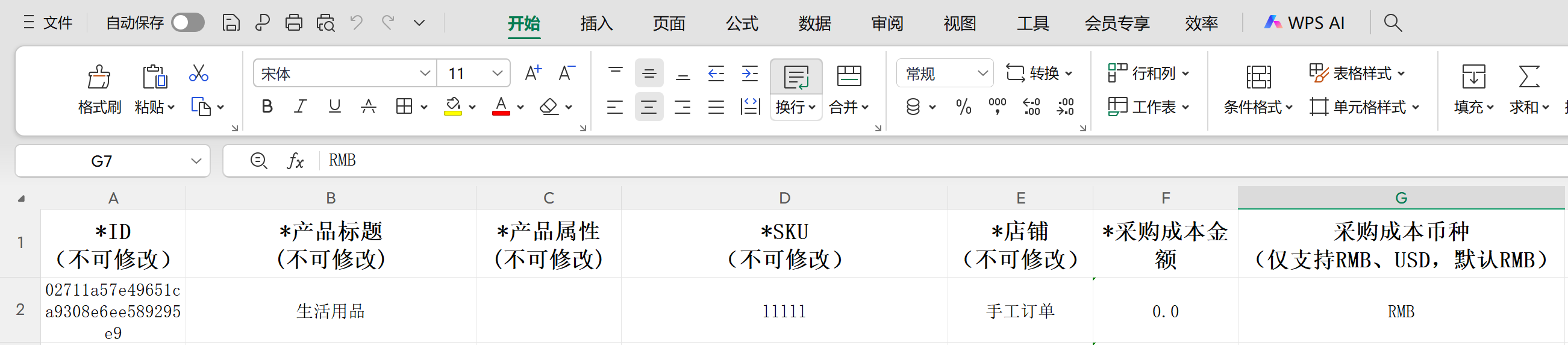 ① 适用场景:当前采购成本页面有产品SKU,想使用表格填写好成本再导入