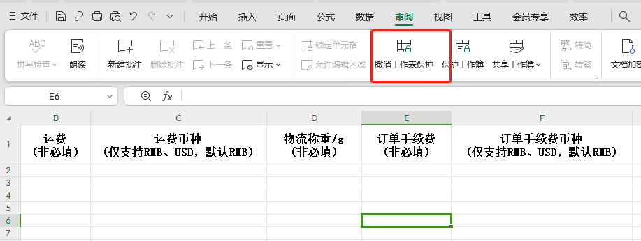 3、表格中,成本必须填写,可以写0,如果为空,导入会报错