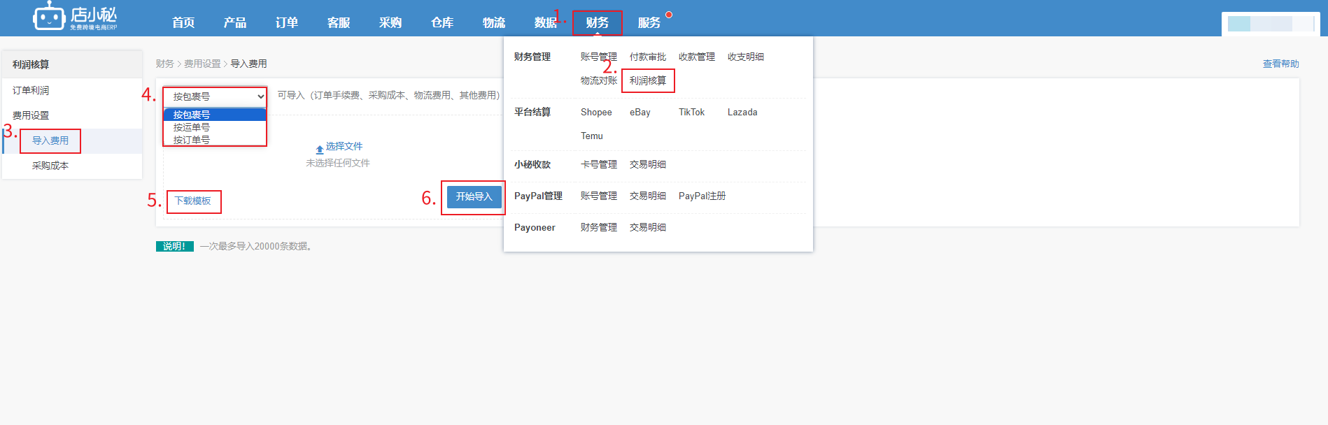 非VIP,若需要针对已经进入利润核算,更新采购成本,可以手动导入费用(平台利润不支持)