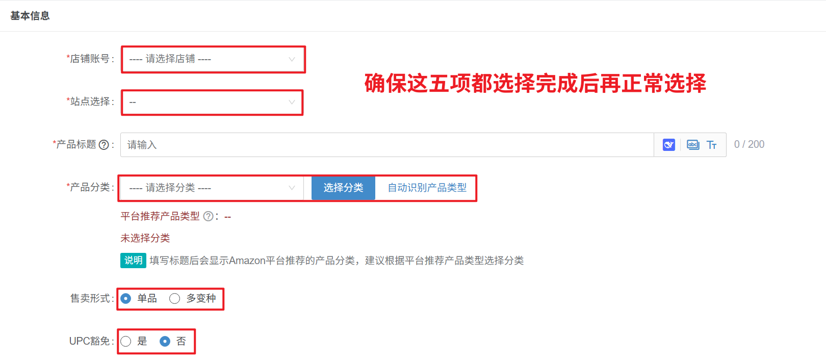 产品—Amazon发布产品,产品ID / 变种主题无法选择