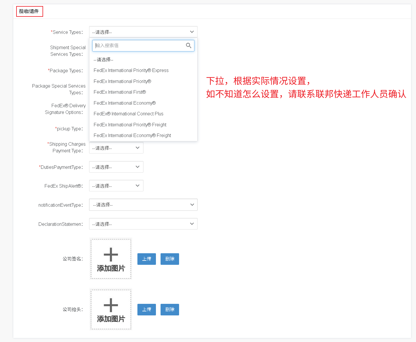 根据实际情况设置,如不知道怎么设置,请联系联邦快递工作人员确认。