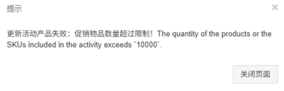 【4】TikTok平台接口限制,单个活动产品不能超过10000,按变种数量限制