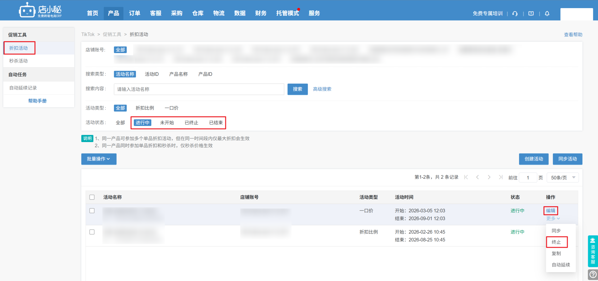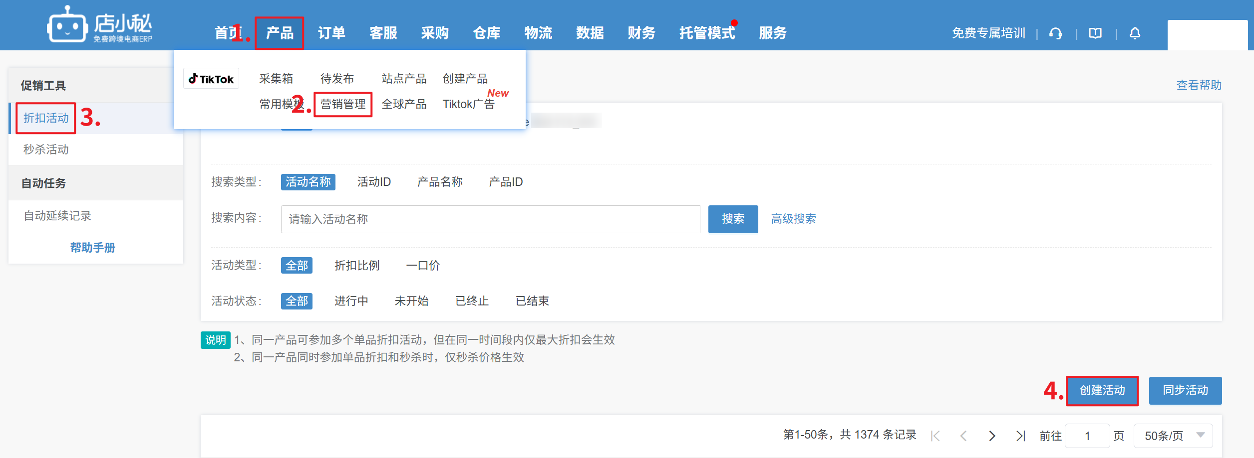 定义:通过店小秘创建TikTok促销活动,同步TikTok后台促销活动,进行管理