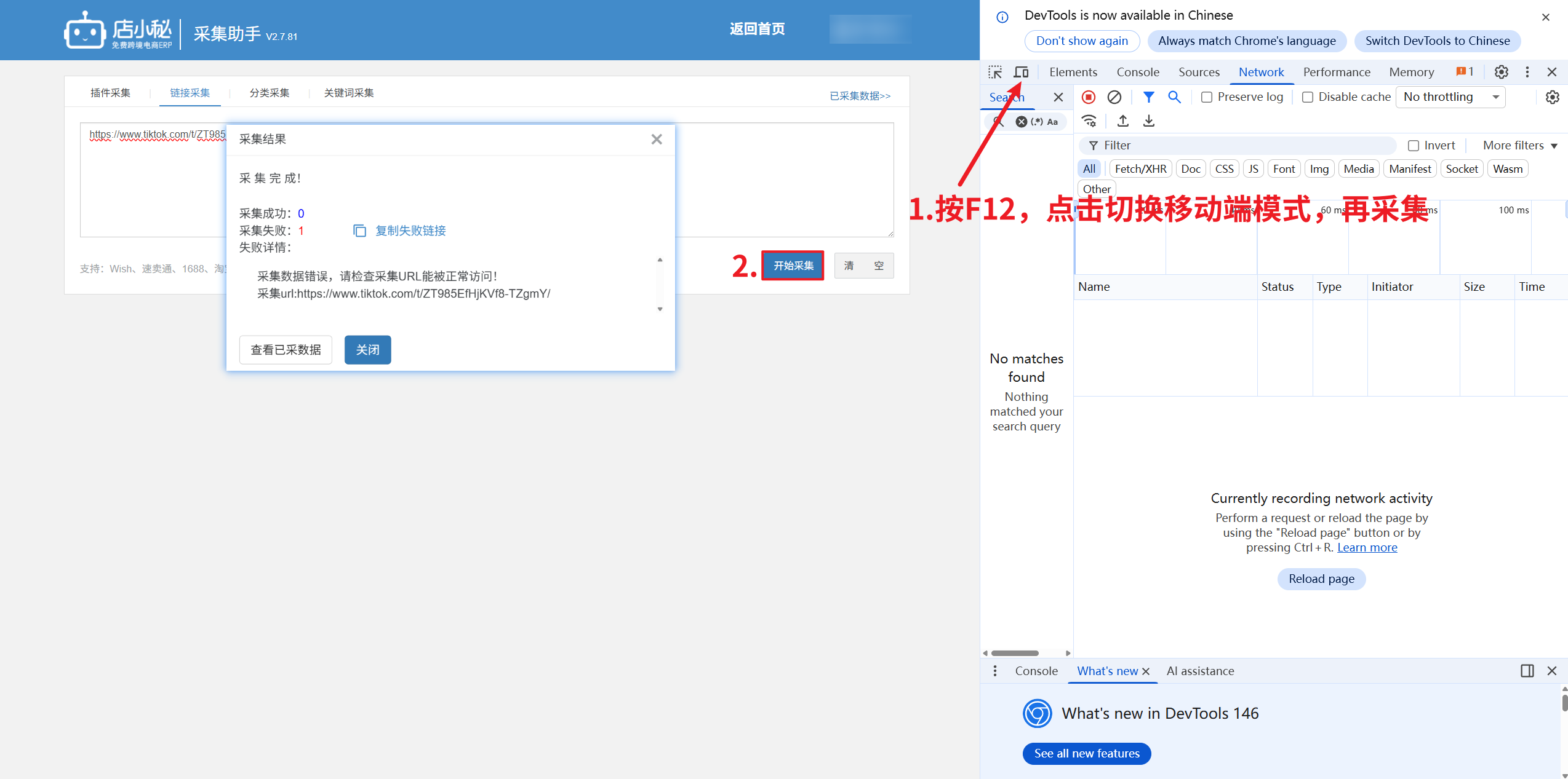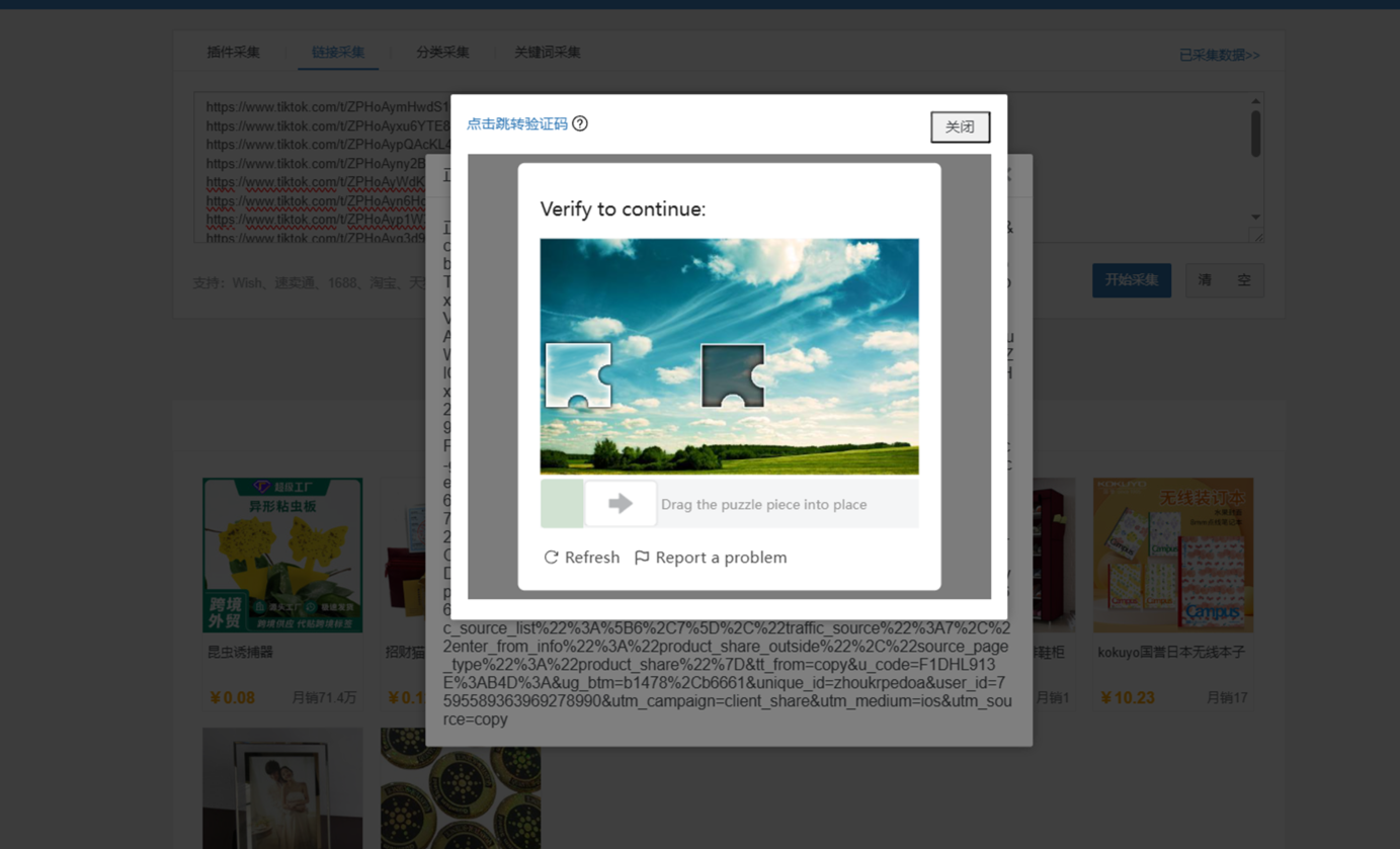 Q1:采集TikTok产品失败,一直弹窗显示需要验证?