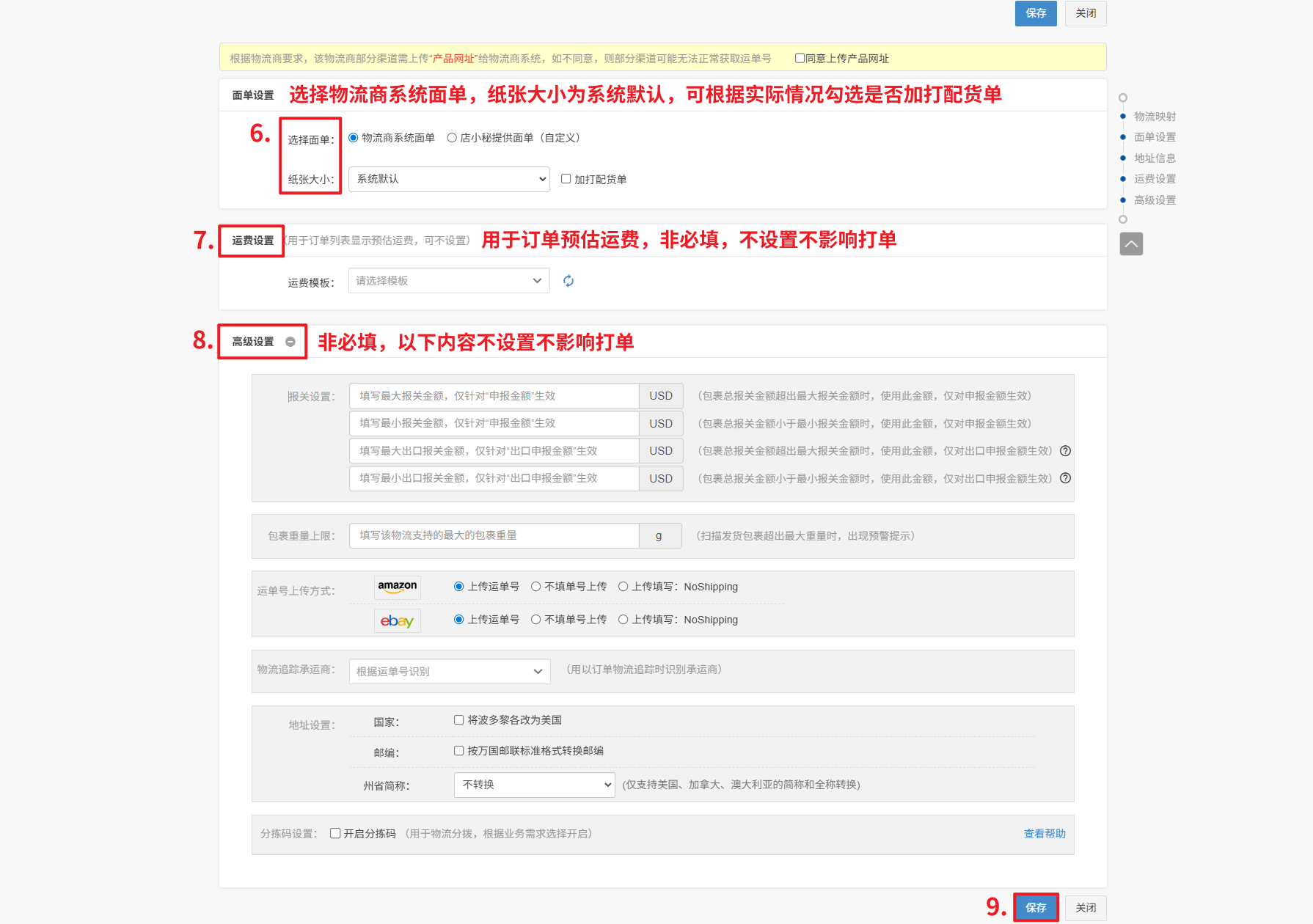 2、填写最大或最小报关金额/出口报关金额后,当您订单报关金额,超过这个最大报关金额后,以填写的最大报关金额向物流商提交