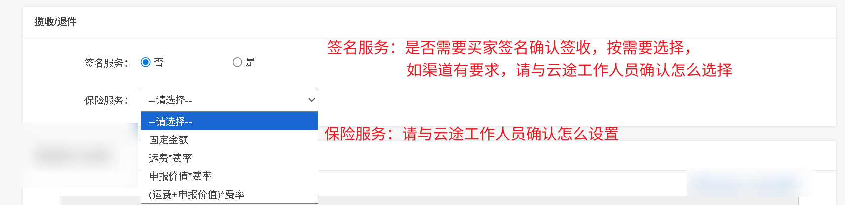 签名服务:是否需要买家签名确认签收,按需要选择,如渠道有要求,请与云途工作人员确认怎么选择;