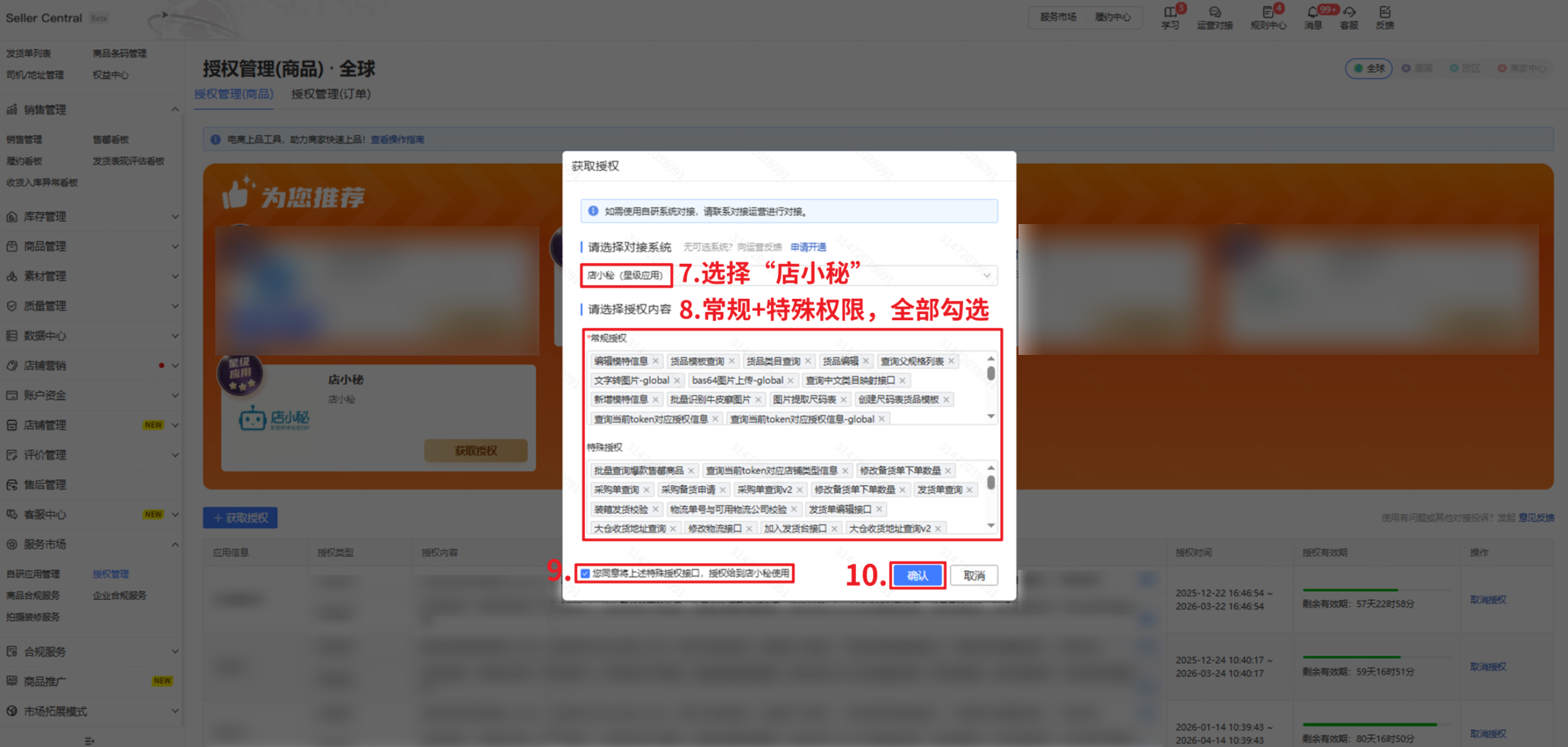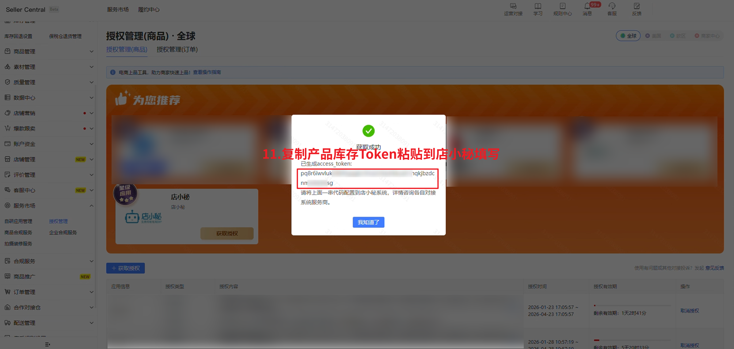 注意:产品库存Token必须进入全球站点(商品)获取,不能从其它站点获取,否则授权失败