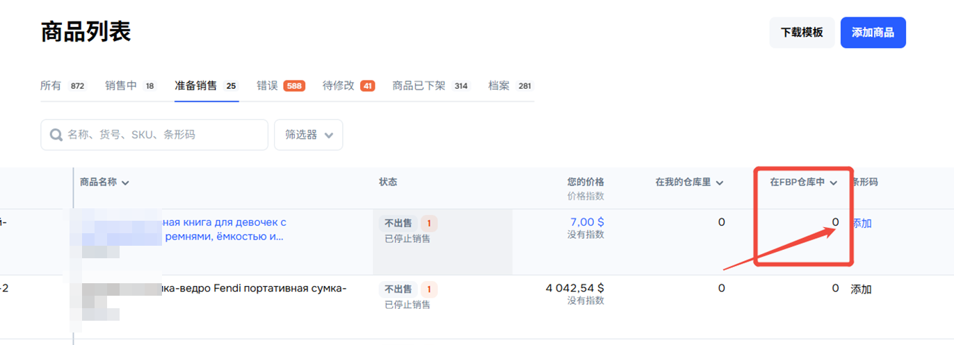 Q6:OZON产品修改库提示:HеЛьзЯ вруЧHу обновить остатки длЯ FBP складов