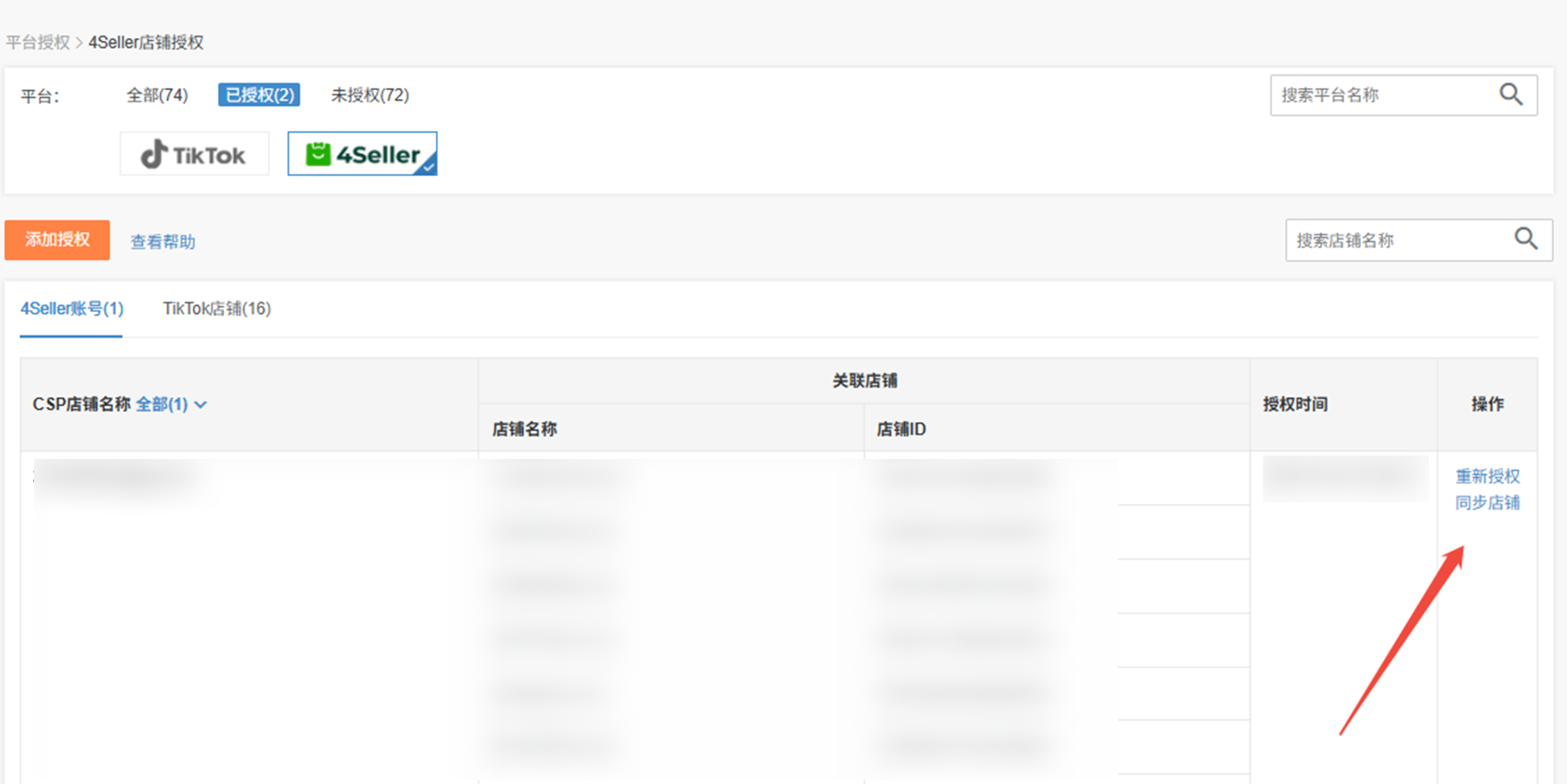 若4seller后台已授权TikTok店铺,参考方式二同步店铺授权