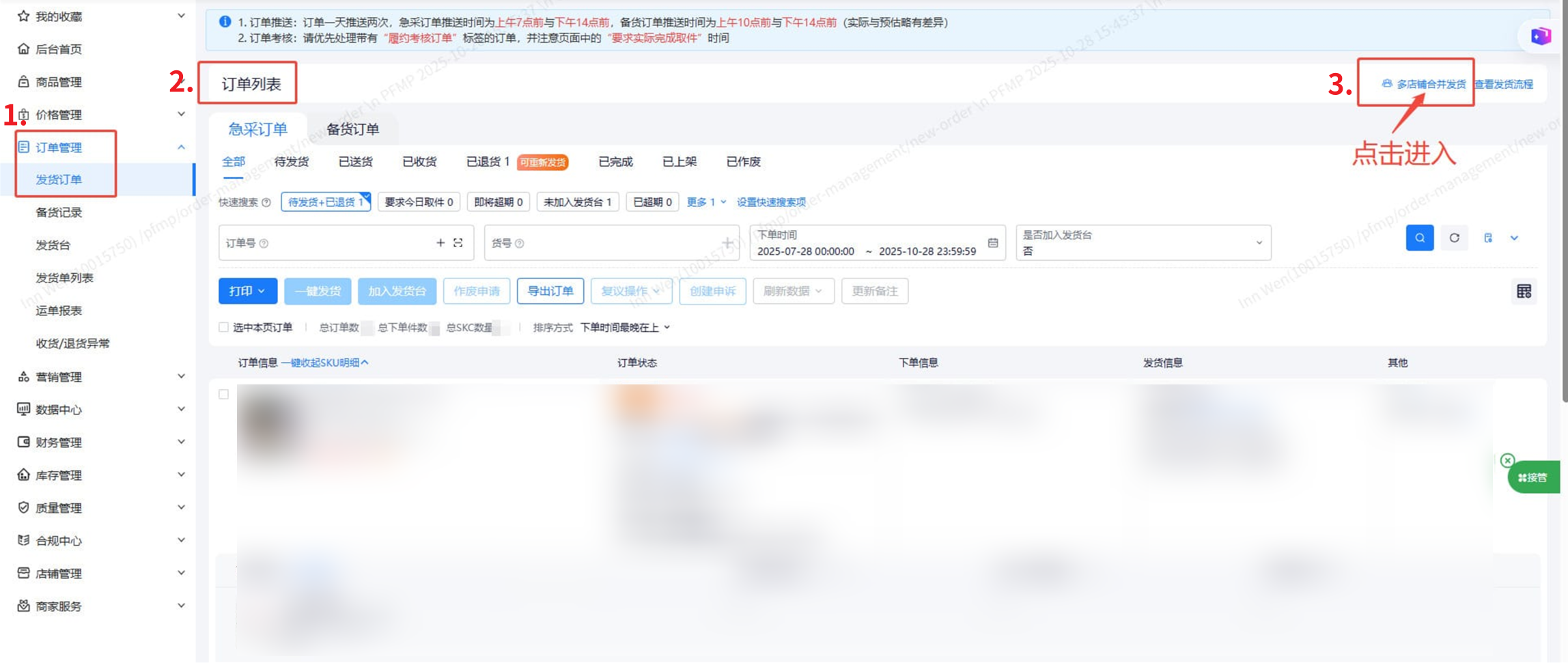 选择共享地址发货后,提交到Shein后台,平台会根据规则自动进行合单操作