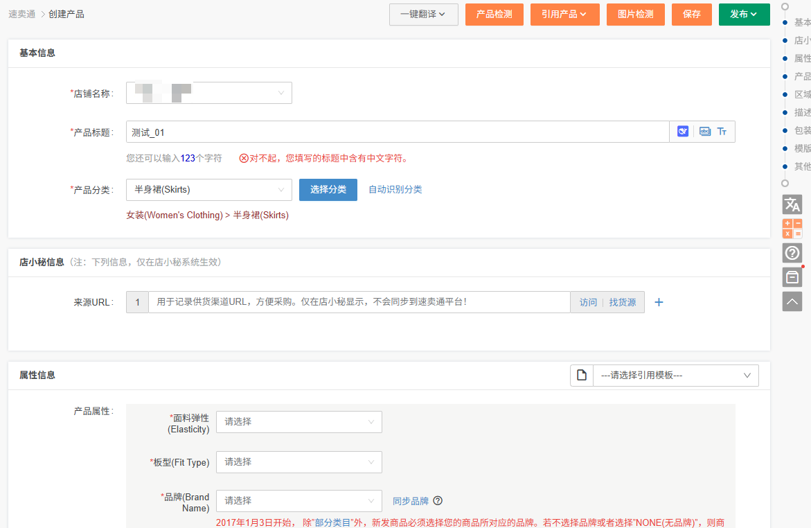 注意:若是想要发布到半托管店铺需要选择速卖通