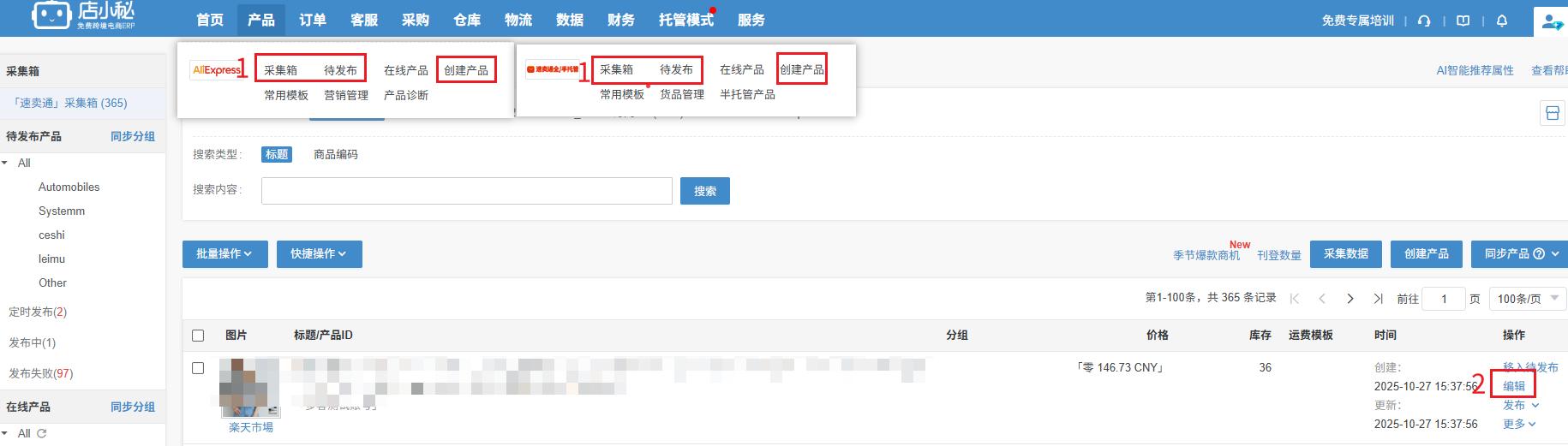 速卖通全托管/半托管店铺采集箱—编辑发布
