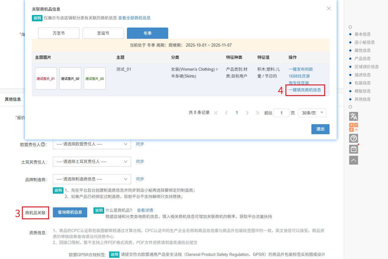 速卖通POP/全托管—采集箱/待发布/创建产品—编辑—查询商机信息—一键填充商机信息—可把商机品的信息填充到产品编辑页