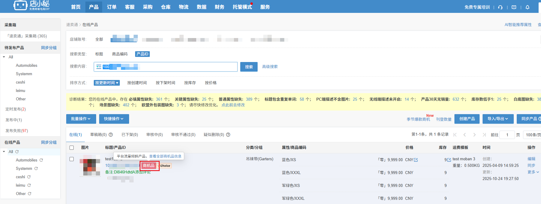 注意:发布产品3天后可同步产品,查看是否带有商机品标签,带有标签则成为商机品,可得到平台流量倾斜