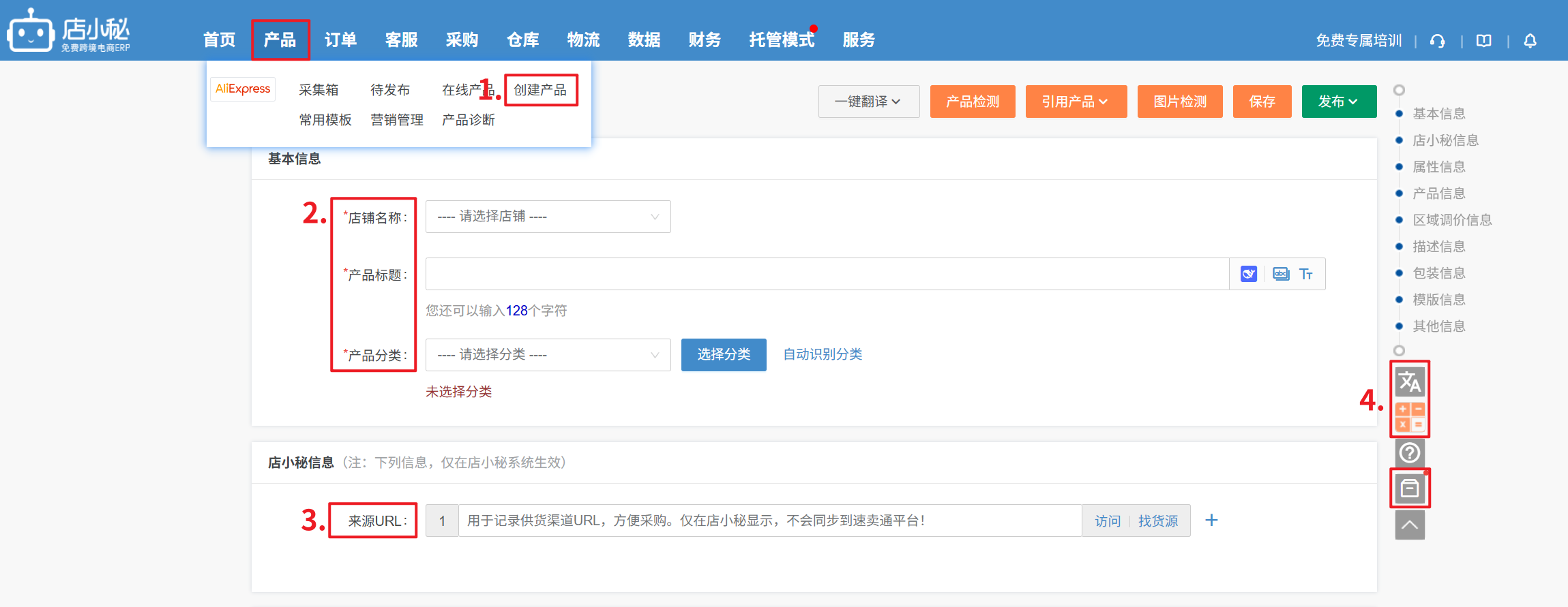 1、产品—速卖通—点击创建产品