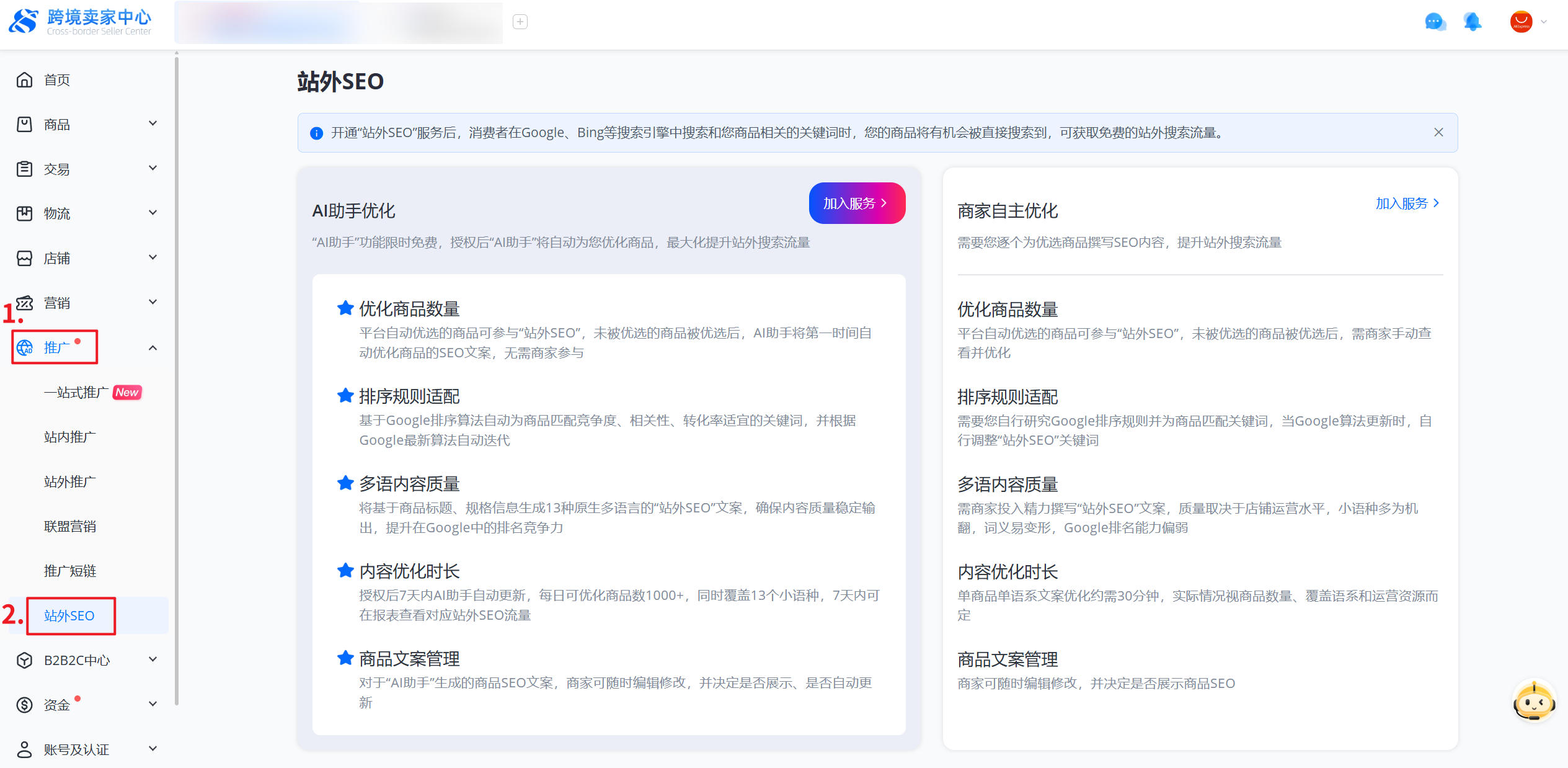 ① 半托管服务:速卖通店铺已升级为半托管,发布产品时可勾选参与加入半托管服务