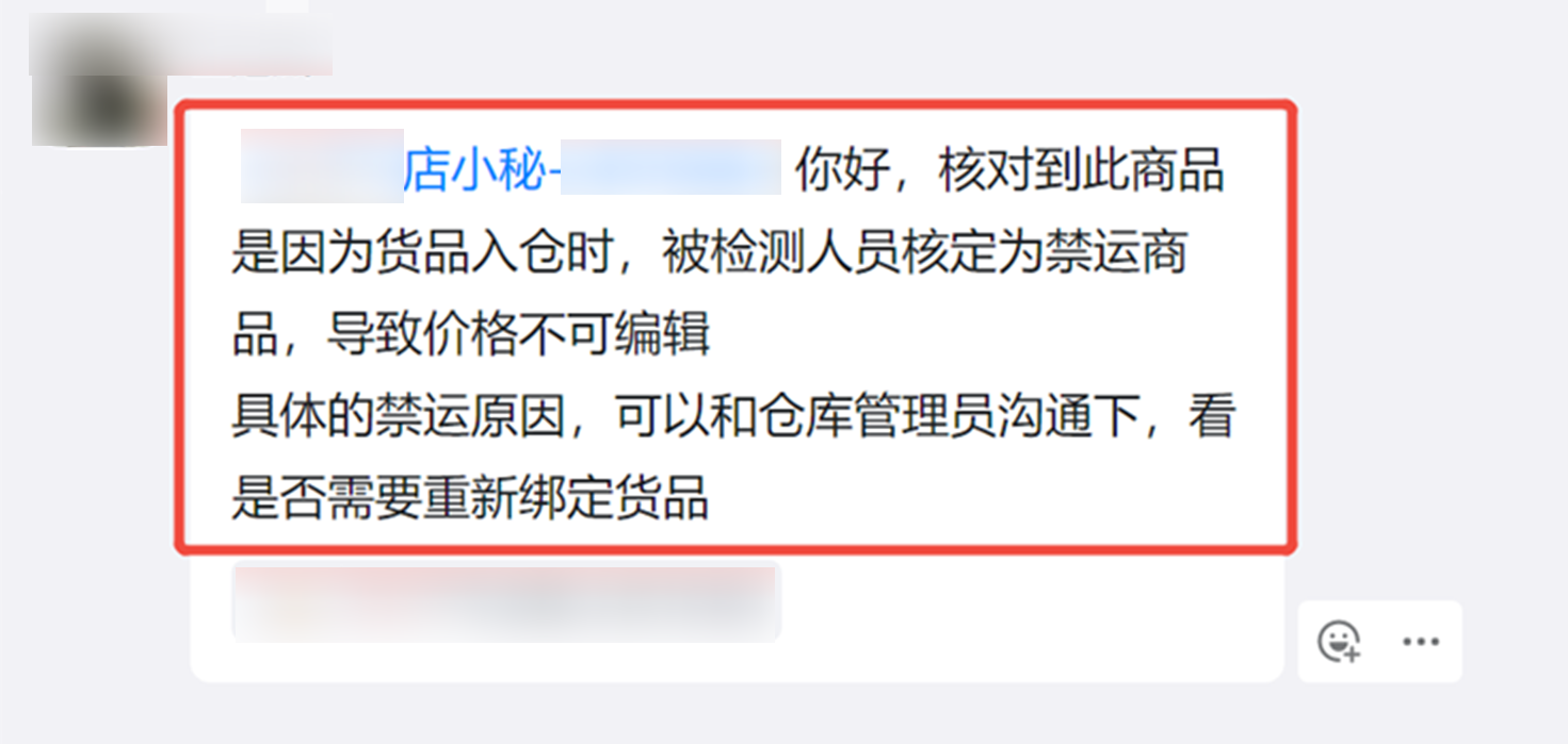 A2:原因:货品入仓时,被检测人员核定为禁运商品,导致价格不可编辑