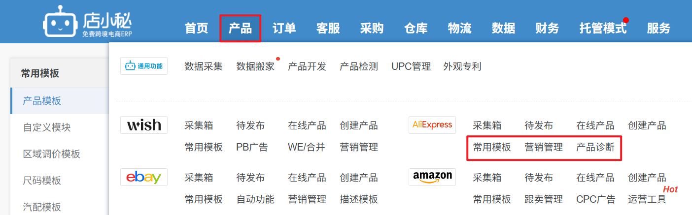 ① 常用模板:产品模板,具体流程可参考:help.dianxiaomi.com/pre/getContent.htm?id=178